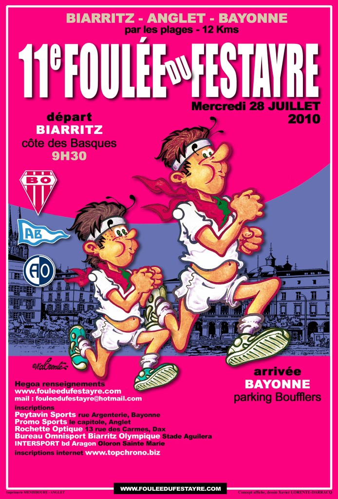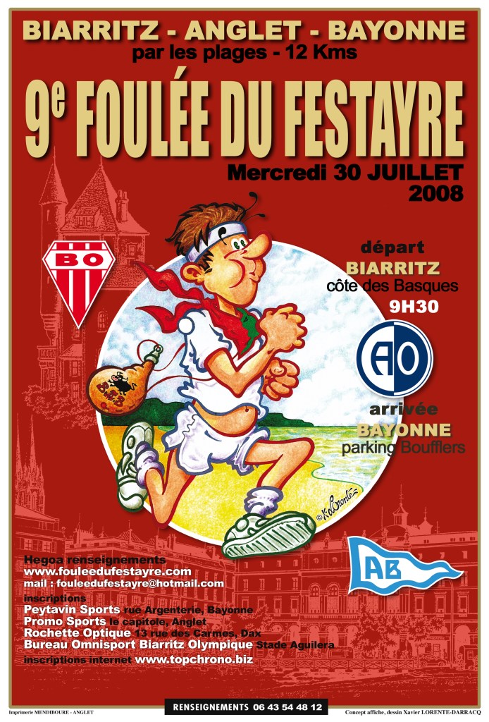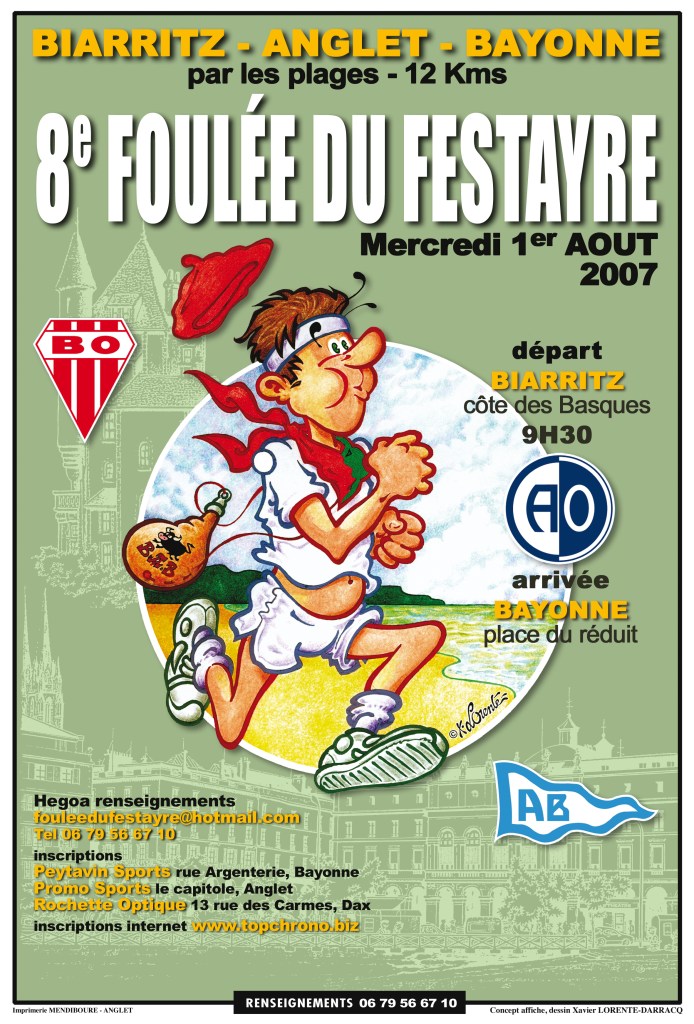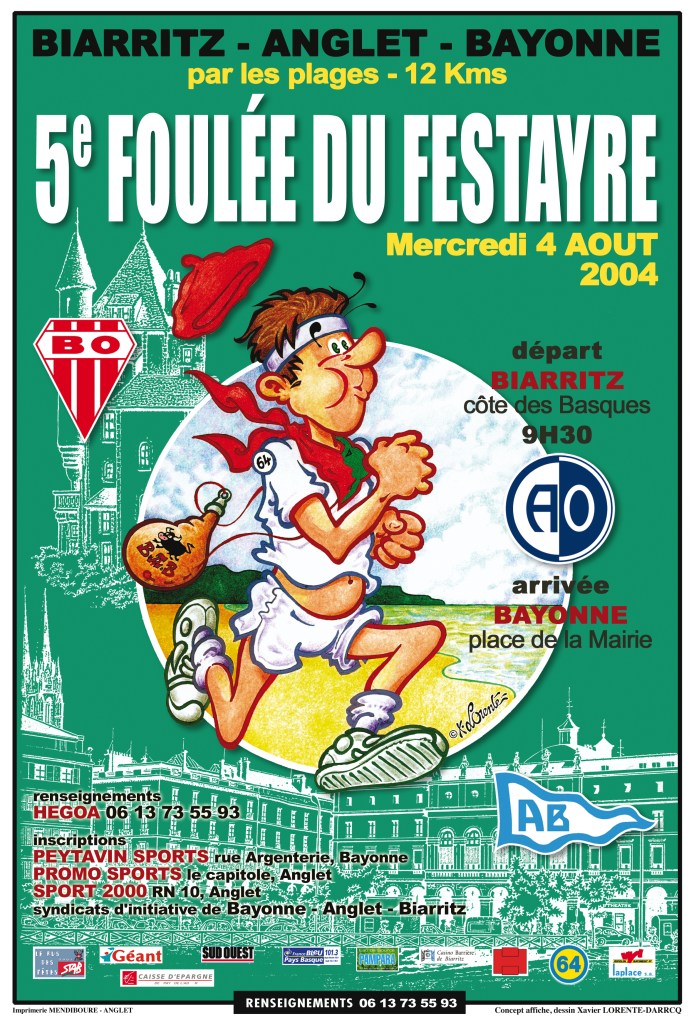 C’est durant la première année du XXIème siècle que naît la première Foulée du Festayre officielle. Une course au départ de Biarritz rejoignant Bayonne en passant par les plages d’Anglet. Une première édition, comptant 582 coureurs, d’une longue série qui n’est pas prête de s’arrêter !!