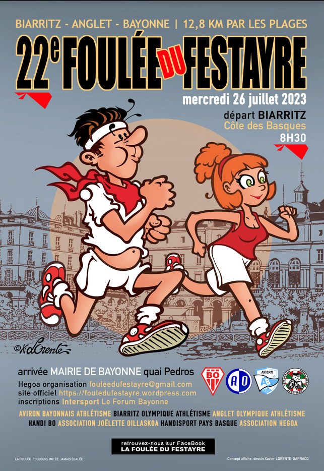 Pour la 24ème année, la Foulée du Festayre se tiendra le mercredi 09 juillet prochain en prélude de l’ouverture des Fêtes de Bayonne 2025 !